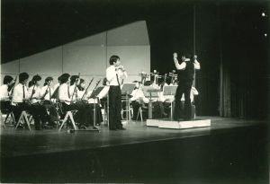 On September 30, 1976, New Asia Chinese Music Society held a concert at the Hong Kong City Hall Theatre, celebrating the 15th anniversary of the Society and the 27th anniversary of New Asia College. The concert began with the Society’s members, in small ensembles, playing Riding Horses in Spring and Affection of Fish and Water, followed by several pieces by the erhu and flute sections, and two more pieces by the full orchestra, conducted by instructor Yeung Yeuk-chuen. Moonlight on the Spring River, played by the Society’s former instructors and honorary members, opened the concert’s second half, which featured solo performances by current instructors on erhu, flute and guqin. The concert concluded with the Society’s members playing, in full orchestra, I Love To Sing Song and Dance of the Flower Basket, under the baton of instructor Ho Ka-chuen.